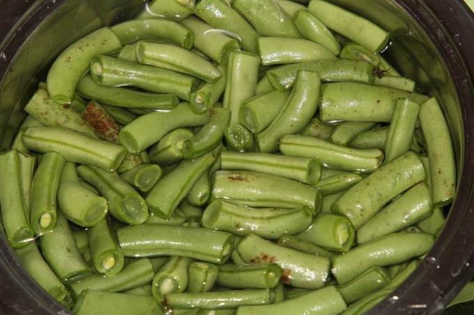 Фасоль моем, чистим и нарезаем на кусочки 3-4 сантиметра. Отвариваем до полуготовности минут 15-20.