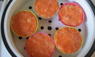 Силиконовые формочки смазать растительным маслом. В каждую формочку выложить по 2 столовые ложки рыбного фарша.Готовить на программе «Варка на пару» 20 минут.