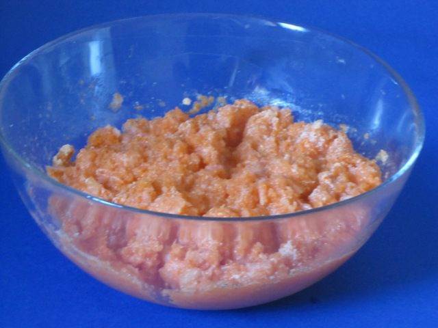 Пробить до состояния пюре. Добавить манку. Оставить на 15 минут.