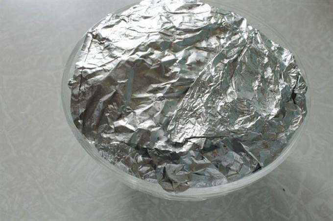 Закрываем фольгой, стараясь, чтобы не было дырочек.