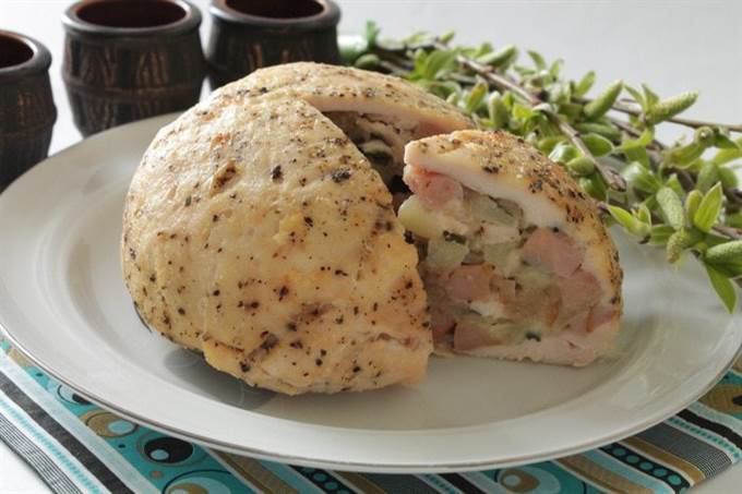 Куриная грудка плохо румянится, не держите мясо долго, оно может пересохнуть, достаточно легкой золотистости. Готовый купол подаем с овощным салатом. Приятного аппетита!
