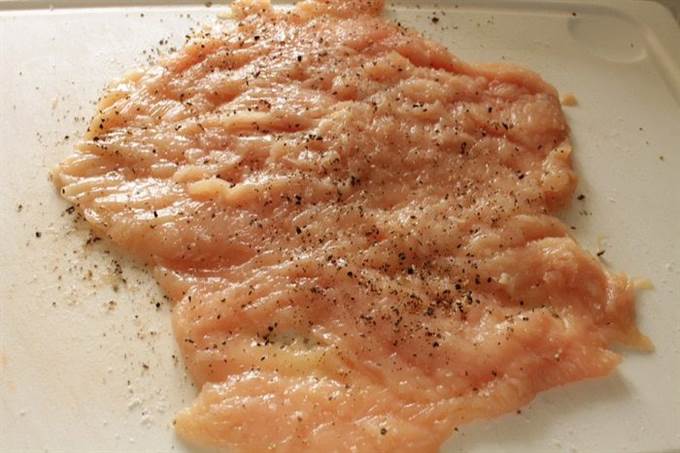Снять пленку, посолить и поперчить по вкусу, накрыть пленкой и убрать в холодильник.