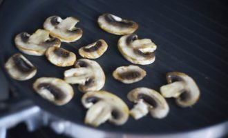 Обжариваем на сковороде-гриль (для красоты) или обычной наши овощи и/или грибы, которые порезали тонкими пластинками.