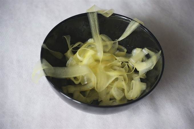 Это и будут наши «макароны». Их посолим буквально щепоткой соли и выдавим чуточку лимонного сока. -