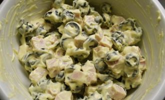 Заправить майонезом и как следует перемешать. Отставить соус настаиваться…