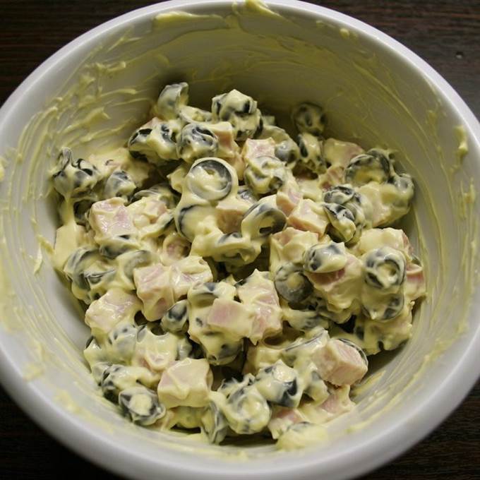 Заправить майонезом и как следует перемешать. Отставить соус настаиваться…