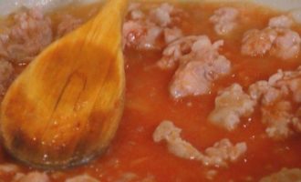 Влить в сковороду с фаршем вино и дать ему выпариться.