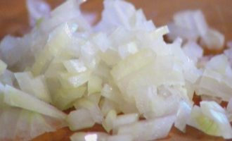 Разогреть в сковороде 2 ст. ложки оливкового масла и обжарить лук до прозрачности.