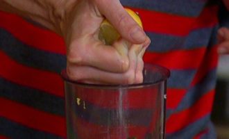 Цедру лимона натереть на мелкой терке, из половинки лимона отжать сок.