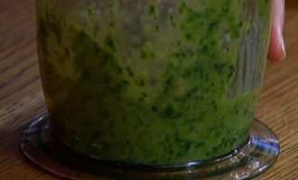 Базилик, лимонную цедру, сахар и орехи поместить в блендер, добавить щепотку соли, лимонный сок и 2-3 ст. ложки оливкового масла и все взбить.