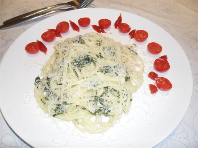 Паста со шпинатом и сыром филадельфия