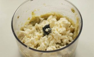 • Добавить (3/4) раскрошенной феты, оставив ~1/4 на посыпку. Нажать на «пульс» еще 1-2 раза до небольших кусочков.