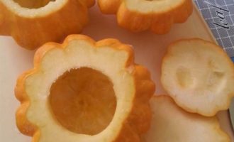 Начинаем с порционных горшочков: срезаем крышечку, ложкой удаляем сердцевину.