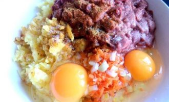 Вбиваем пару яиц. Перемешиваем.