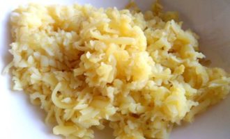 Отварной картофель натереть на крупной терке.