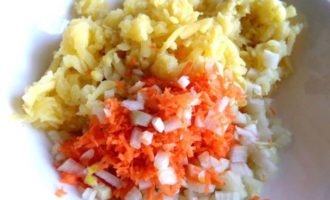 Соединяем овощи с картофелем.