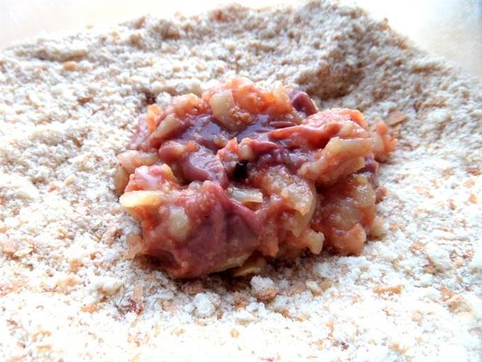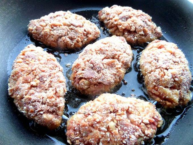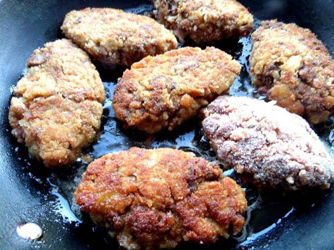 Берем ложку массы и обваливаем в сухарях как обычные котлеты.