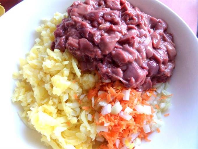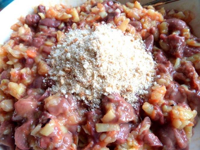 Получается 11 штучек зажаристых вкуснейших котлет с любимыми картошечкой и печенкой.