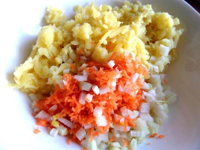 Соединяем овощи с картофелем.