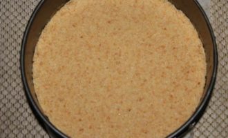 • Дно разъемной формы выстилаем пергаментом, выкладываем сухари и плотно трамбуем.