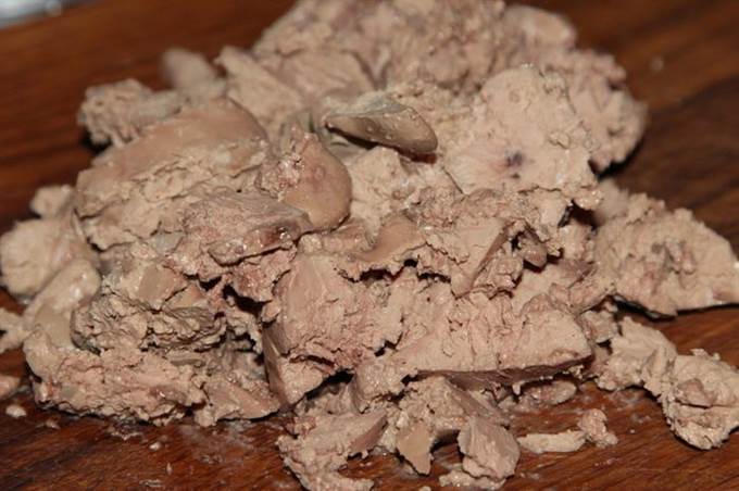 • В теплой воде замачиваем быстрорастворимый желатин, ставим на медленный огонь и, постоянно помешивая, растворяем желатин полностью. Не доводите до кипения! Только хорошо прогреть. В чашу блендера к сырной массе добавляем печень и пробиваем блендером. Затем берем две столовые ложки смеси, добавляем к желатину и помешиваем до получения однородности. В чашу блендера добавляем паприку.