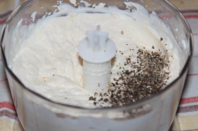 • Взбиваем блендером и добавляем молотый перец и снова пробиваем блендером.