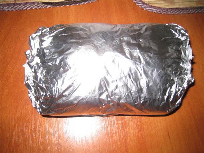 Плотно завернуть в два слоя фольги, положить в жаропрочную емкость.