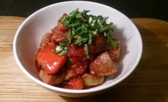 Подаем с рубленой кинзой, чесноком, сбрызгиваем оливковым маслом и свежемолотым перцем.