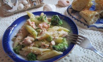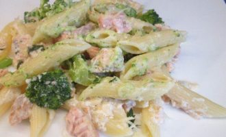 Пенне ригате с лососем и брокколи под сливочным соусом