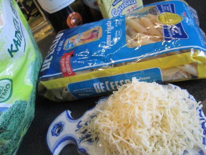 • Добавляем пенне, брокколи. Затем — натерный сыр, перемешиваем и снимаем с плиты.