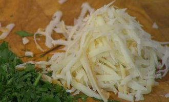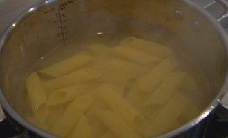 Переложить пенне на блюдо и посыпать натертым сулугуни.