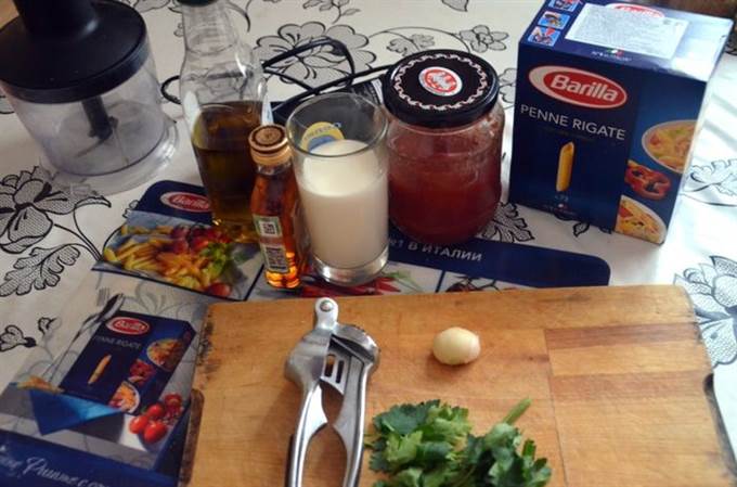 В сковороду добавьте коньяк и оставьте на несколько минут его выпариваться, затем добавьте сливки, томатный соус, молотый перец, и уже в конце нарубленную петрушку и соль по вкусу. Хорошенько размешайте ингредиенты и выключите огонь.
