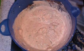 Смешать сметану с томатами в собственном соку, добавить рубленый укроп.