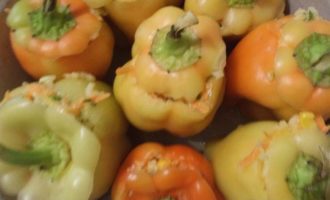 Перец, фаршированный рисом, кукурузой и зелёным горошком
