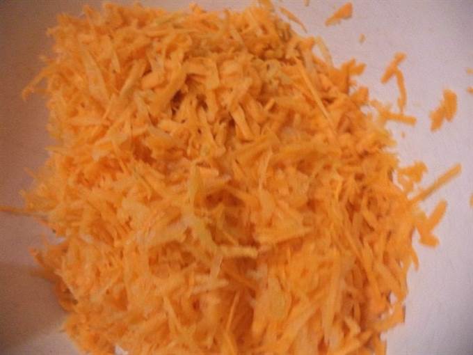 • Морковь очистить, натереть на крупной тёрке.