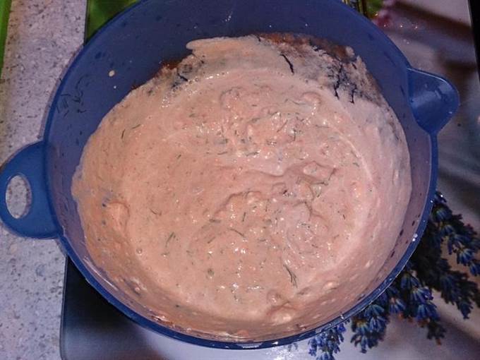 Смешать сметану с томатами в собственном соку, добавить рубленый укроп.