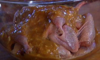 • Смазать перепелок мисо-соусом и оставить мариноваться при комнатной температуре на час (а лучше на ночь в холодильнике).