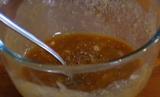 • Приготовить мисо-соус: смешать чеснок и имбирь, влить сливовое вино, соевый соус, добавить мисо-пасту, сливовую пасту, поперчить и перемешать.