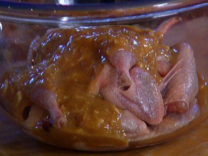 • Смазать перепелок мисо-соусом и оставить мариноваться при комнатной температуре на час (а лучше на ночь в холодильнике).