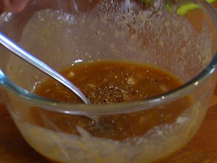 • Приготовить мисо-соус: смешать чеснок и имбирь, влить сливовое вино, соевый соус, добавить мисо-пасту, сливовую пасту, поперчить и перемешать.