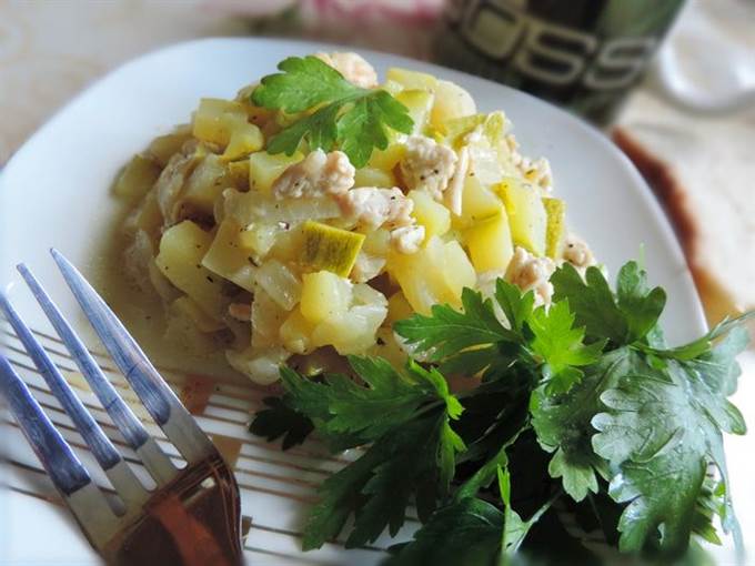 • Наши кабачки готовы. Если они покажутся вам сыроватыми, можете потомить их еще немного. Но вся прелесть в том, чтоб они не развалились, а остались слегка хрустящими.