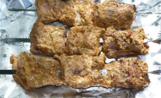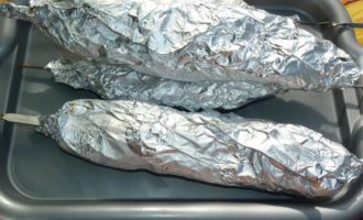 Каждый шампур оборачиваем фольгой в пару слоев.