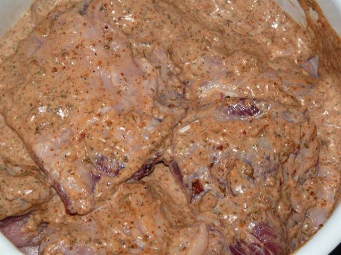 Ребра разрезать на порционные кусочки. Посолить по вкусу.