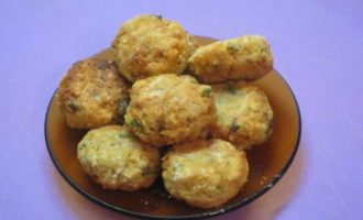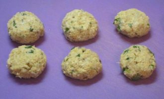 • Из получившейся массы мокрыми руками слепить фрикадельки размером с грецкий орех и чуть приплюснуть.