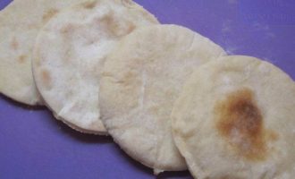 • Выпекать в духовке при 230-240 С на нижней полке. Как только лепешка надуется, как шар, сразу доставать. Выпечка займет 5-7 минут.