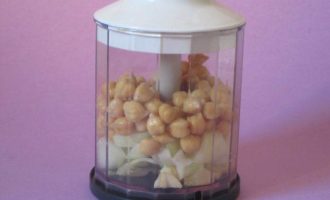 • Нут вместе с луком и чесноком выложить в блендер.
