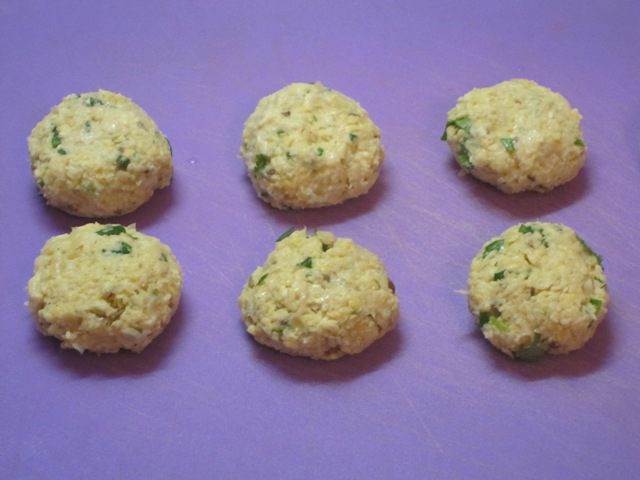 • Из получившейся массы мокрыми руками слепить фрикадельки размером с грецкий орех и чуть приплюснуть.