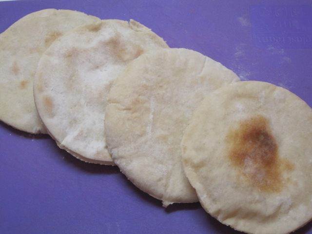 • Выпекать в духовке при 230-240 С на нижней полке. Как только лепешка надуется, как шар, сразу доставать. Выпечка займет 5-7 минут.