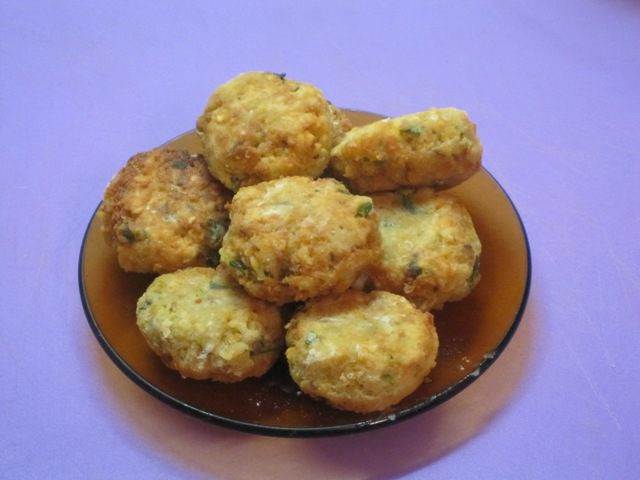 • Обвалять их в оставшейся муке и обжаривать порциями во фритюре золотистой корочки с каждой стороны. Обсушить на бумажном полотенце.