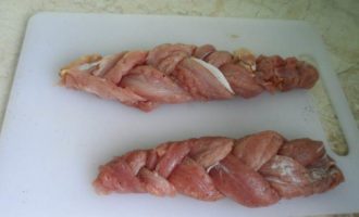 • На каждом филе сделать по-два разреза вдоль, так что бы получиось три полоски, верхний край при этом оставляем целым.